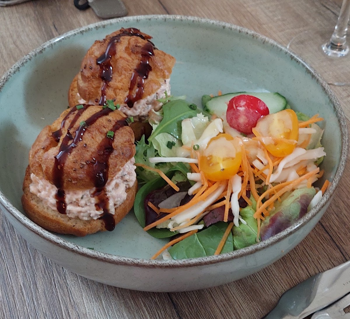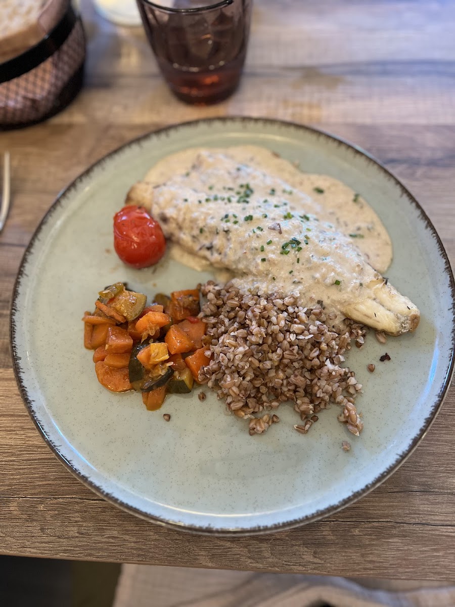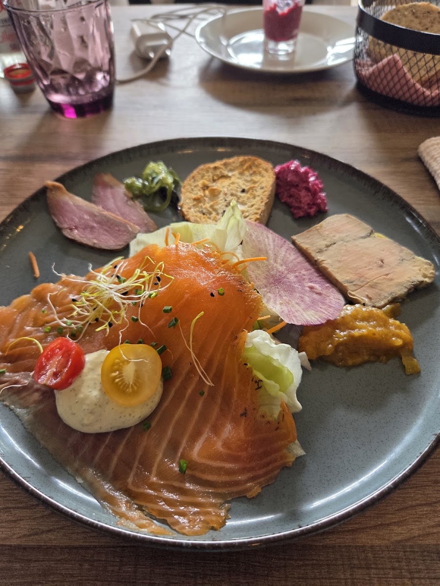 Great local restaurant. Lunch entree+plat at $32. Choices of 3 entrées and 3 main dishes. L assiette degustion with foie gras, smoke salmon and magret de canard is a great start and the portions are very generous. I had la fricasse de st Jacques as my main dish served with buckwheat and again was good portions. Totally a hidden gem I recommend. Staff is very professional and friendly.
